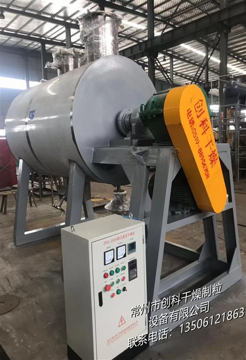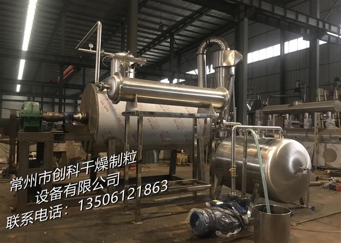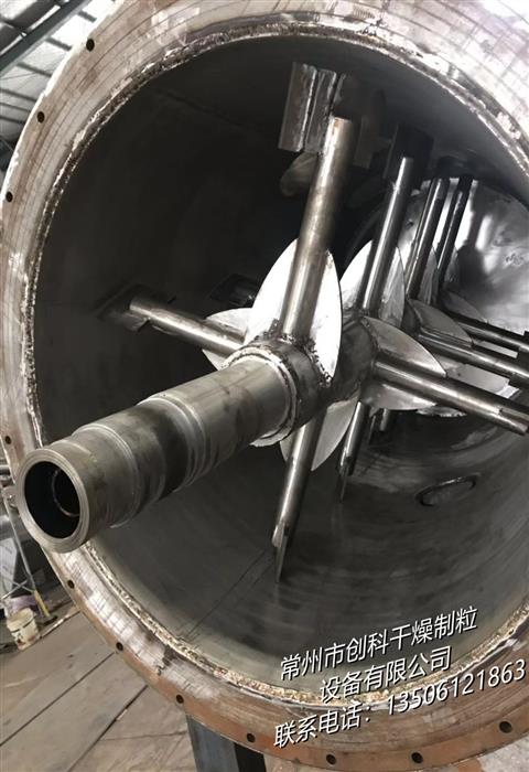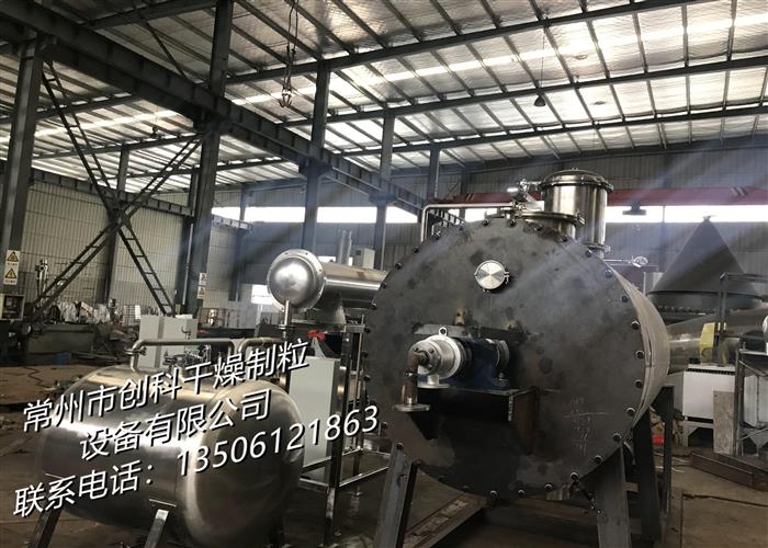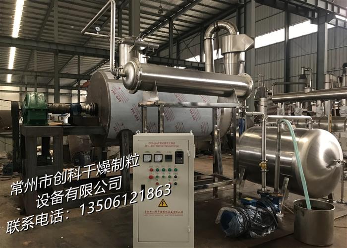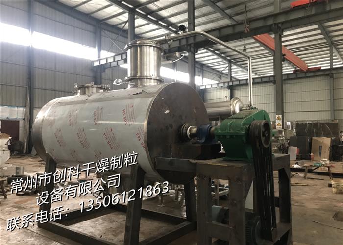本機(jī)是一種新穎臥式間歇式真空干燥設(shè)備,濕物料經(jīng)傳導(dǎo)蒸發(fā),帶有刮板攪拌器不斷清除熱面上的物料,并在容器內(nèi)推移形成循環(huán)流,水份蒸發(fā)后由真空泵抽出。
